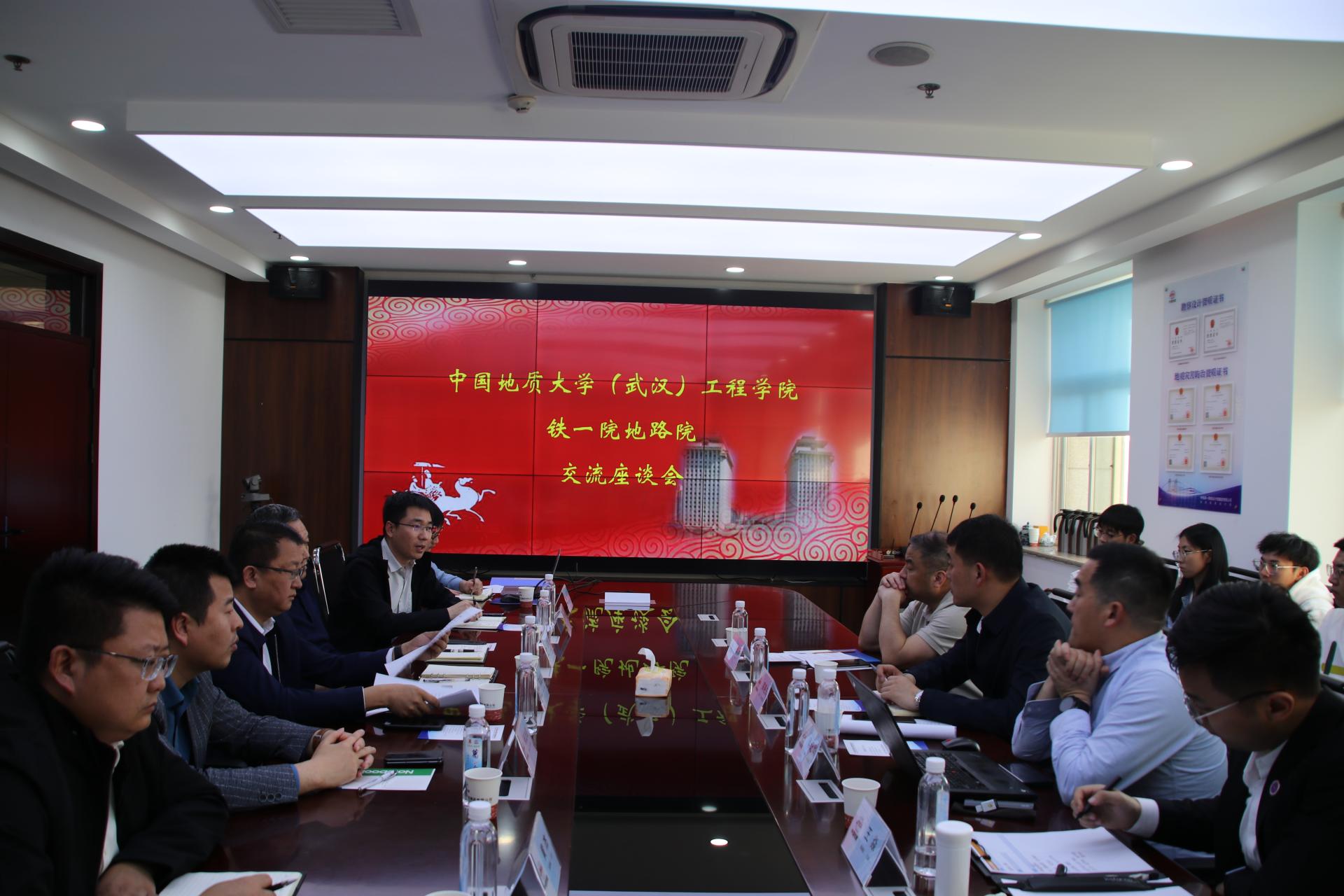 参观院史展览馆后,师生们与铁一院地质路基设计院(简称“地路院”)展开交流座谈。地路院党委书记、院长郭韫武,总工程师、副院长张文忠,副院长张志亮,副总工程师周福军,地路二所所长黄杰,综合室副主任王飞,勘探所副所长郑亮亮,团委书记罗锋参加座谈。